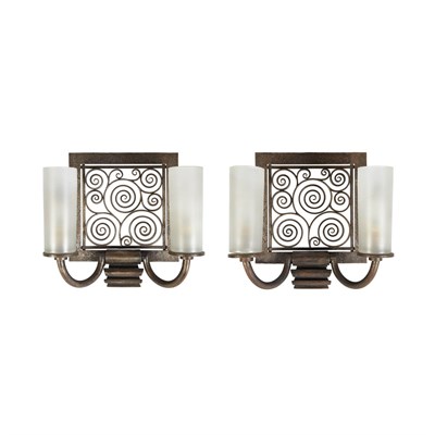 Edgar Brandt Pair of Art Deco Sconces Wrought...