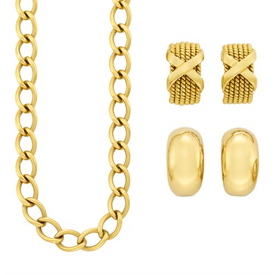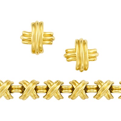 Pair of Gold Earrings and Bracelet, Tiffany & Co.