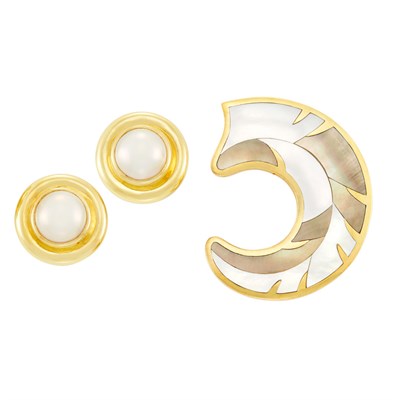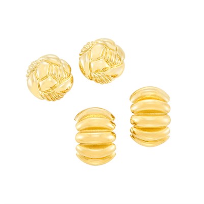 Pair of Gold Knot Earclips, David Yurman, and Pair of Gold Shrimp Earclips, Tiffany & Co.