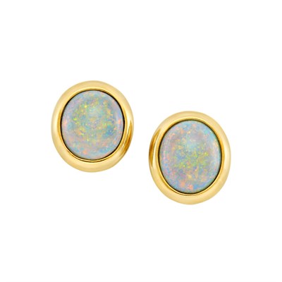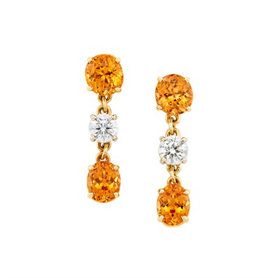 Pair of Two-Color Gold, Fire Opal and Diamond Pendant-Earrings