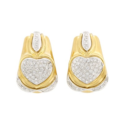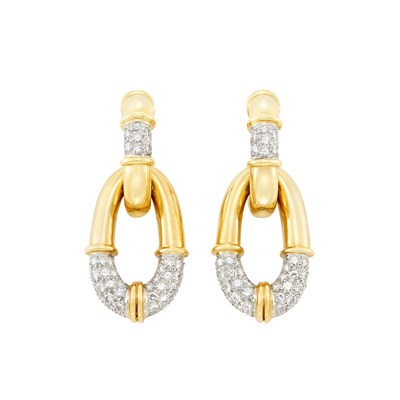 Pair of Two-Color Gold and Diamond Pendant-Earclips