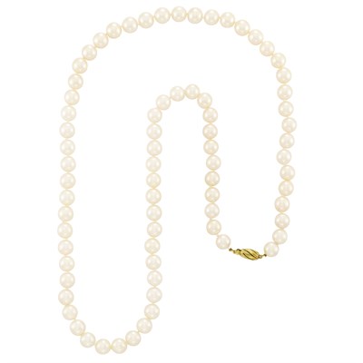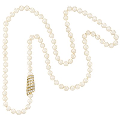 Long Cultured Pearl Necklace with Two-Color Gold and Diamond Clasp