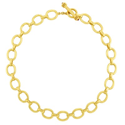 Hammered Gold and Cabochon Ruby Toggle Link Necklace, Elizabeth Locke