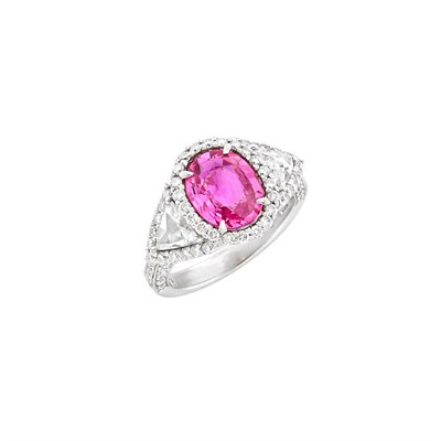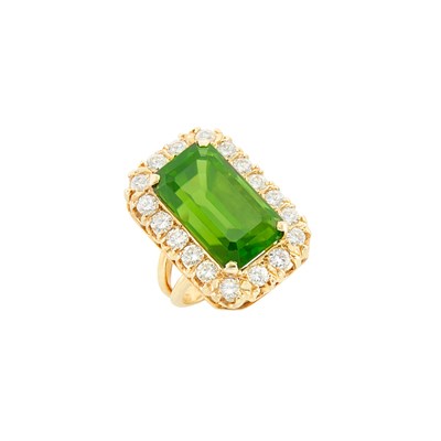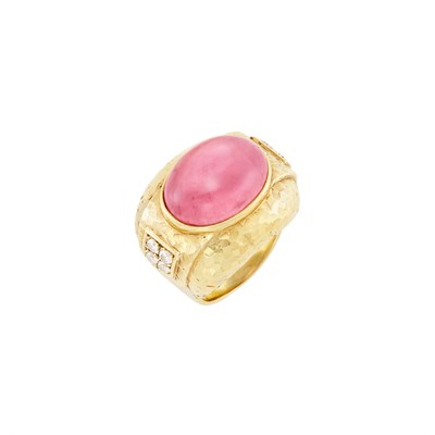 Hammered Gold, Cabochon Pink Tourmaline and Diamond Ring