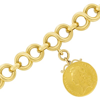 Gold Link Bracelet with High Karat Gold Medallion Charm