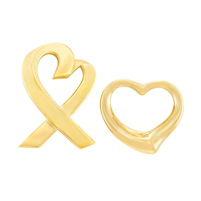 Two Gold Heart Brooches, Tiffany & Co., Paloma Picasso and Elsa Peretti