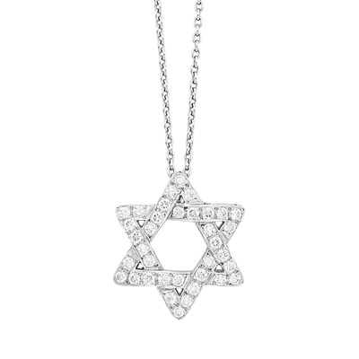 Platinum and Diamond Star of David Pendant, Tiffany & Co., with White Gold Chain Necklace