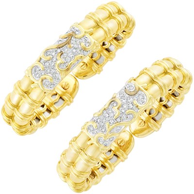 Pair of Two-Color Gold, Steel and Diamond Bangle Bracelets