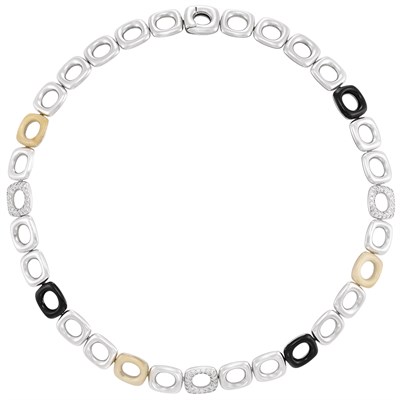 White Gold, White Chalcedony, Black Onyx and Diamond Link Necklace, Tiffany & Co.