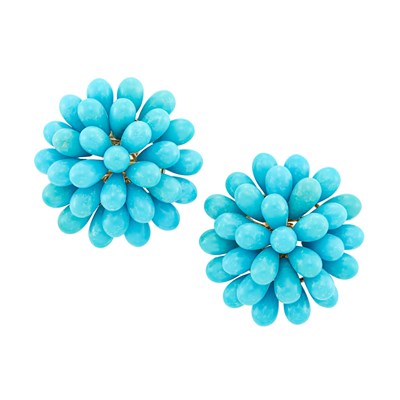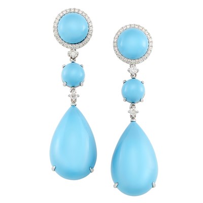 Pair of White Gold, Turquoise Composite and Diamond Pendant-Earrings