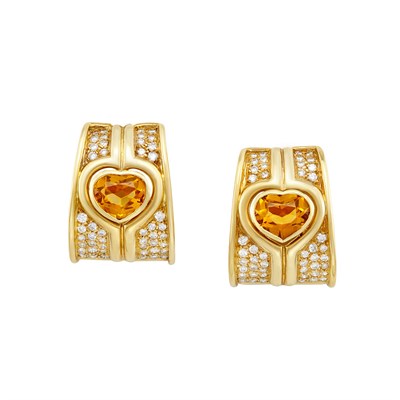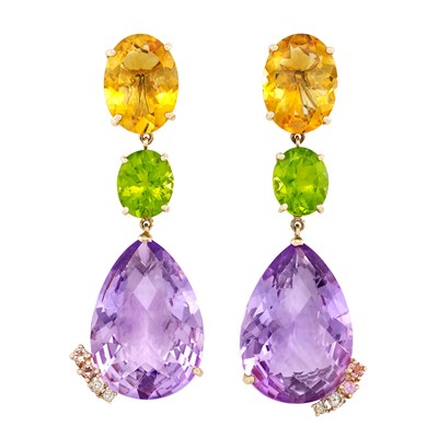 Pair of Rose Gold, Citrine, Peridot, Amethyst and Brown Diamond Pendant-Earclips