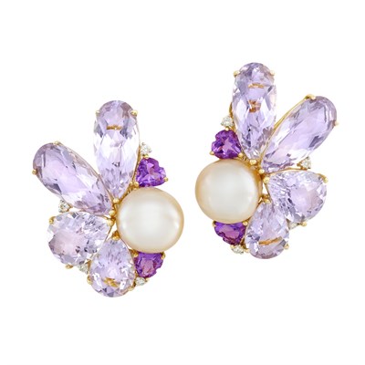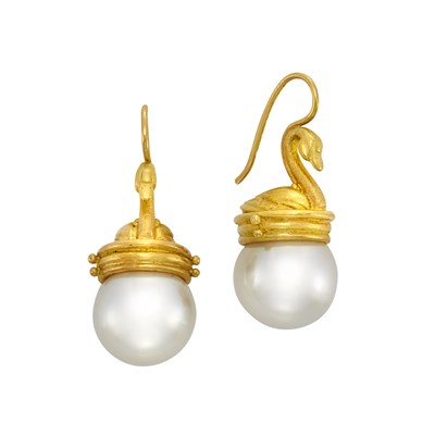 Pair of Gold and South Sea Cultured Pearl Earrings, Lily Fitzgerald