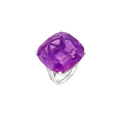 White Gold, Cabochon Amethyst, Amethyst and Diamond Ring