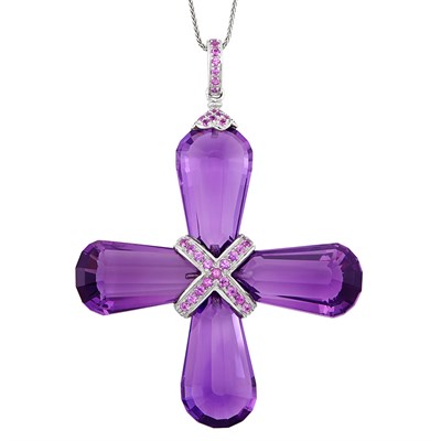 Reversible White Gold, Amethyst, Pink Sapphire and Diamond Cross Pendant with Chain