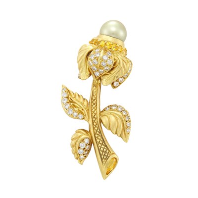 Gold, Gray Cultured Pearl, Diamond and Yellow Sapphire Brooch, Judith Ripka