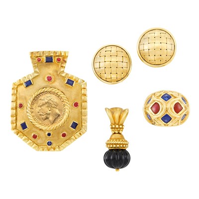 Group of Gold, Gold Coin, Ruby, Sapphire and Black Onyx Jewelry