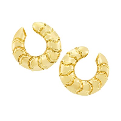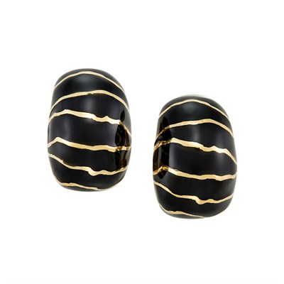 Pair of Gold and Black Enamel Bombé Hoop Earrings, Nicholas Varney