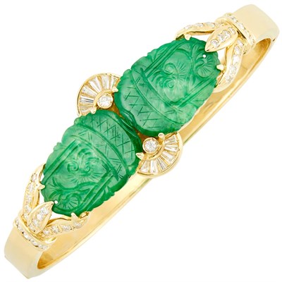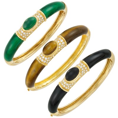 Three Gold, Malachite, Tiger's Eye, Black Onyx and Diamond Bangle Bracelets