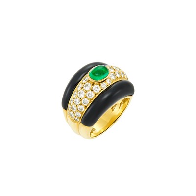 Gold, Black Onyx, Cabochon Emerald and Diamond Ring