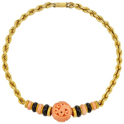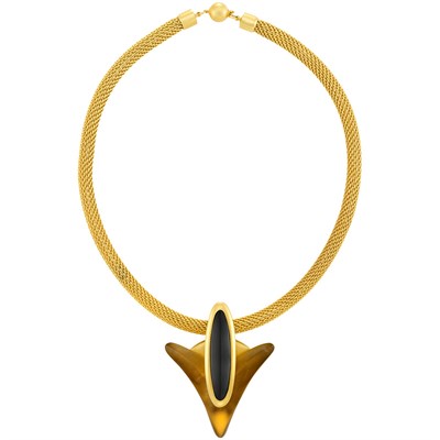 Gold, Black Onyx and Frosted Orange Glass Pendant-Necklace, Linda MacNeil