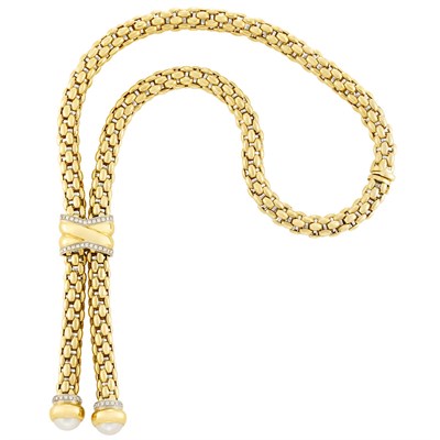 Two-Color Gold, Diamond and Mabé Pearl Slide Lariat Necklace
