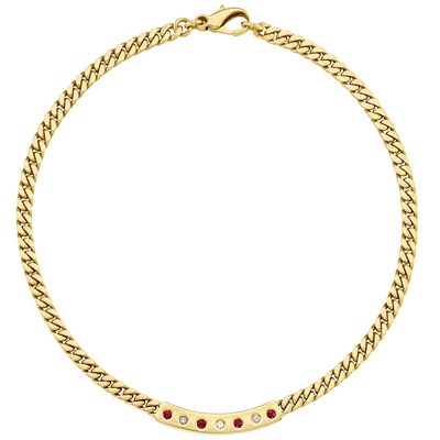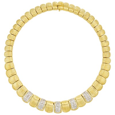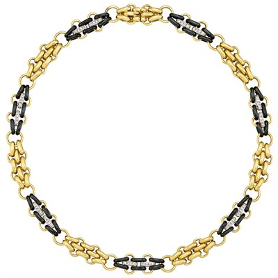 Two-Color Gold, Black Enamel and Diamond Chain Necklace