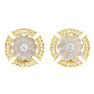 Pair of Gold-Plated Gold, Frosted Crystal and Diamond Earclips