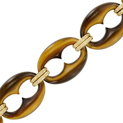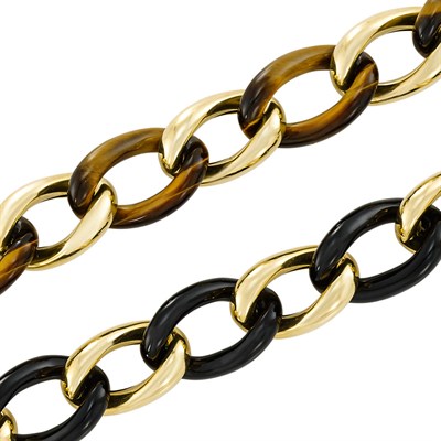 Pair of Gold, Tiger's Eye and Black Agate Curb Link Bracelets