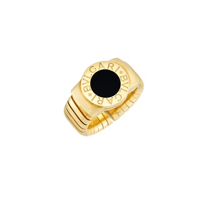 Two-Color Gold and Cabochon Amethyst 'Pyramid' Ring, Bulgari