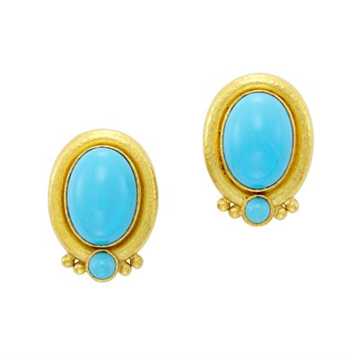 Pair of Gold and Turquoise Earclips, Elizabeth Locke