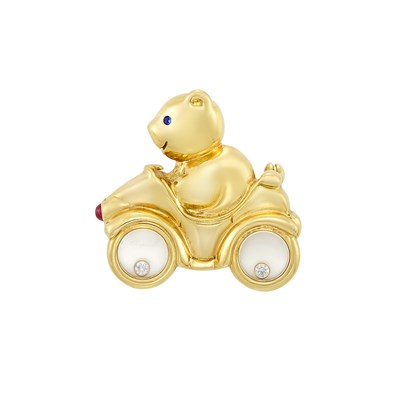 Gold, Crystal, Diamond, Cabochon Ruby and Sapphire Bear Bicycle Brooch, Chopard