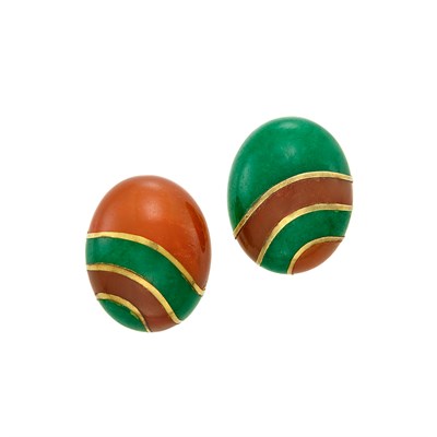 Pair of Gold and Hardstone Earclips, Tiffany & Co.