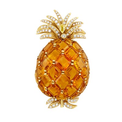 Gold, Citrine and Diamond Pineapple Pendant Clip-Brooch
