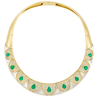 Gold, Mother-of-Pearl, Emerald and Diamond Necklace