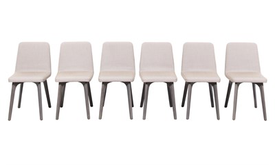 Set of Six Thibault Desombre for Ligne Roset Upholstered Stained Oak VIK Dining Chairs