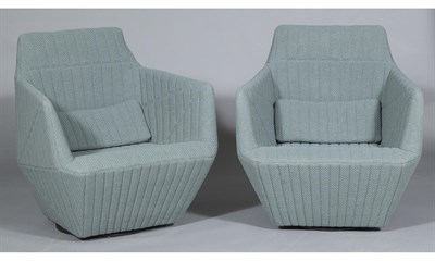 Pair of R. & E. Bouroullec for Ligne Roset Upholstered Facett Swivel Armchairs