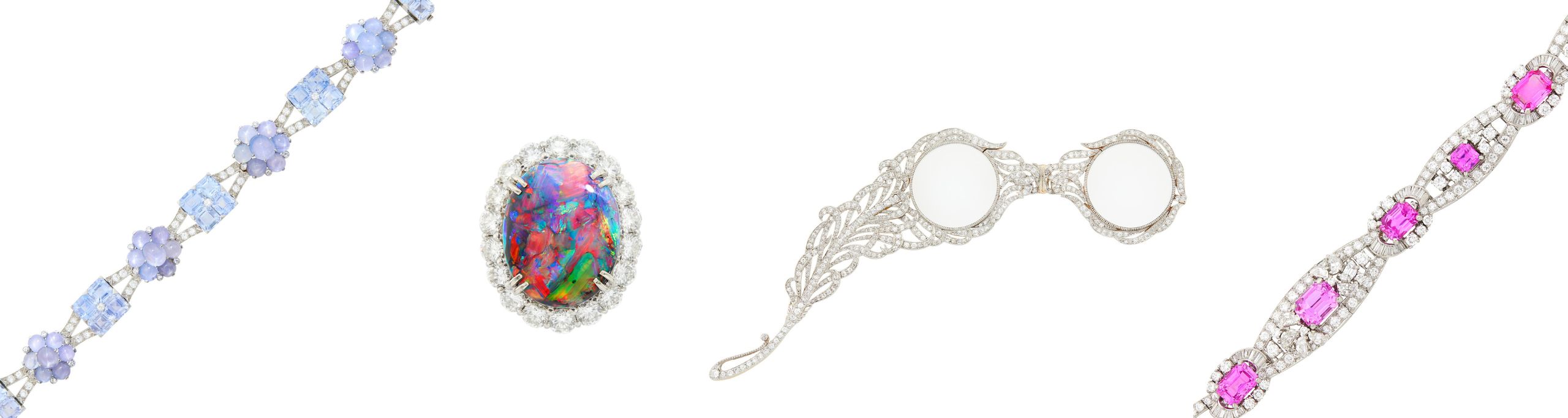 An Art Deco bracelet by Oscar Heyman & Brothers for J.E. Caldwell, circa 1922, with pink sapphires and diamonds (Lot 217).