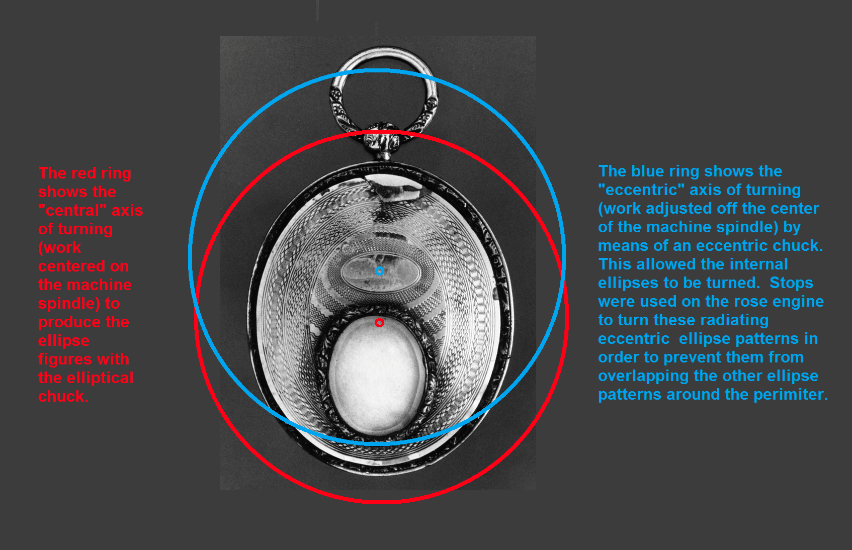 [5] To see how this is done, see MADE Rose Engine Lathe No. 5 Engine Turning w/ Eccentric Chuck on Fine Silver (Guilloche) https://www.youtube.com/watch?v=NZryll5nXw4