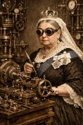 Fig. 9 Steampunk Queen Victoria at work at her lathe. Created by Pamela Ehrlich and ChatGPT