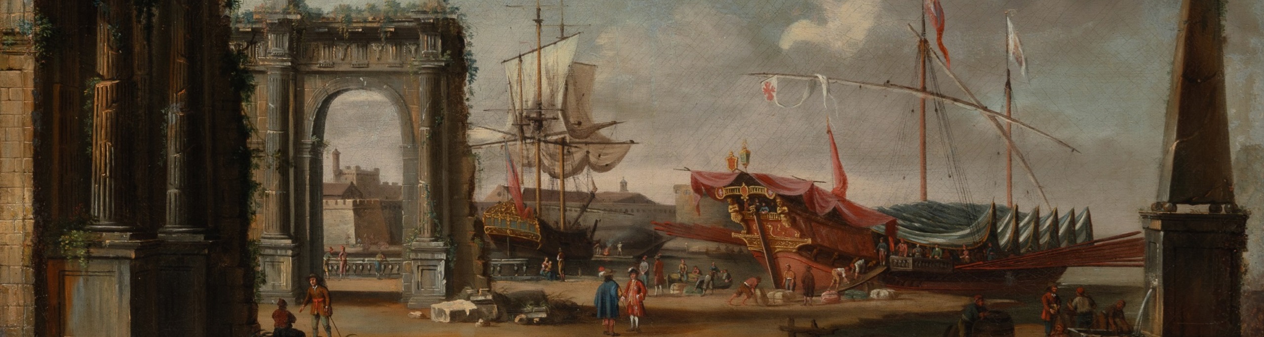 Highlighting the sale was an 18th century French School view of Ships Loading Cargo in a Mediterranean Harbor estimated at $2,500-5,000 that achieved a stunning $38,500. Property of a Distinguished European Collector, the painting depicted a fantastical scene of sailing ships in a harbor surrounded by classical ruins.