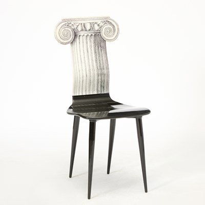 Piero Fornasetti Printed and Painted Wood “Capitello Iconico” Side Chair