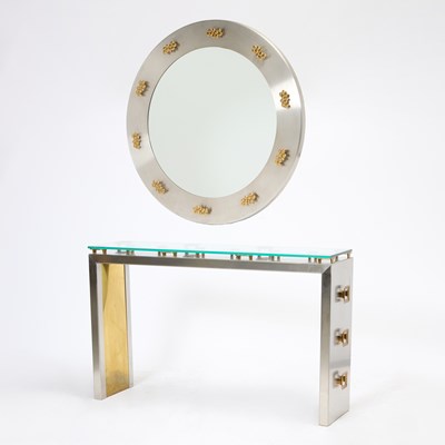 Sandro Petti for L'Angelo MetallArte Steel, Brass and Glass Console and Mirror