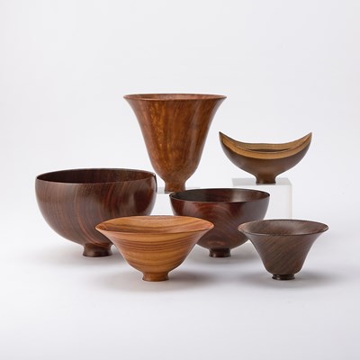 Group of Six Burt Marsh Turned Exotic Wood Bowls