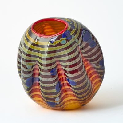 Dale Chihuly Blown Glass 'Cinnamon Macchia' Vessel With Red Lip Wrap
