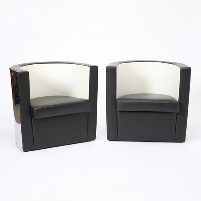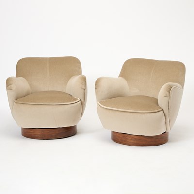 Pair of Vladimir Kagan Upholstered Swivel Armchairs