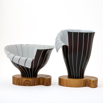 Two Toni Zuccheri for Barovier & Toso Murano Blown Glass Spacchi Vases