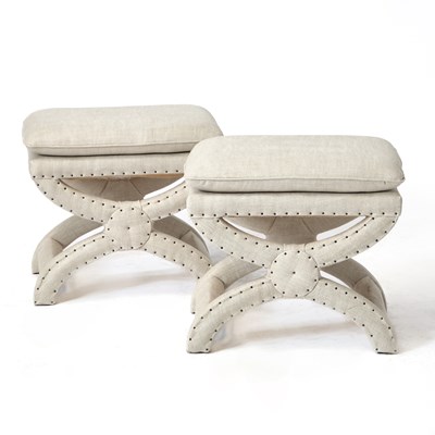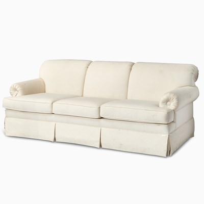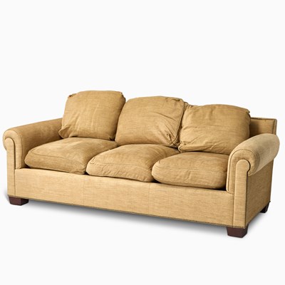 Upholstered Loose-Cushion Three-Seat Sofa with Nailhead Trim