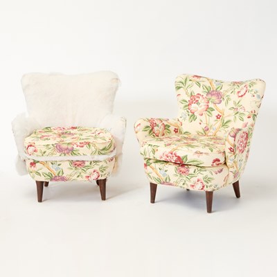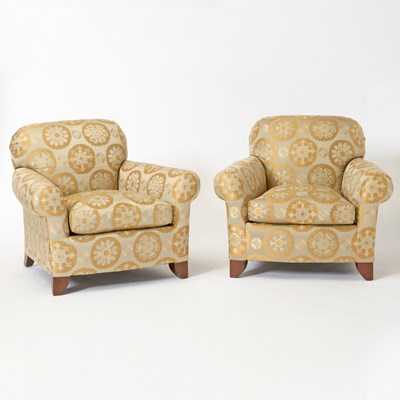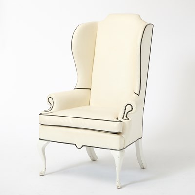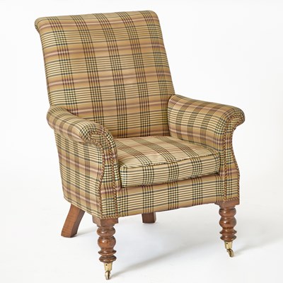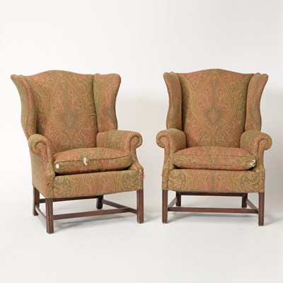 Pair of George III Style Upholstered Mahogany Wingchairs