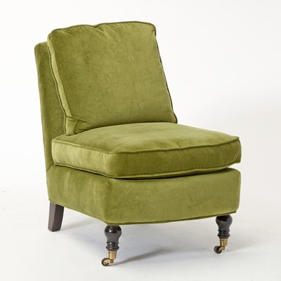 Pair of Napoleon III Style Upholstered Ebonized Slipper Chairs