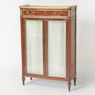 Louis XVI Brass Mounted Marble Top Mahogany Side Cabinet